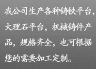 全意鑄鐵平臺平板廠家專注生產T型槽鑄鐵平臺,大理石氣浮實驗石平臺,han接鑄鐵平臺,裝配鑄鐵平臺,檢測測量大理石平臺,試驗鑄鐵平臺,測量大理石平板,T型槽平臺,電機試驗平臺,三坐標測量平臺等鑄鐵平板來圖加工定做業(yè)務,以合理的價格,專注的技術服務于國內外客戶,互利合作,共同發(fā)展!公司位于河北交河開發(fā)區(qū),京滬鐵路、104國道、106國道、京福高速公路橫穿而過,與我國的兩大直轄市北京、天津近在咫尺,地理位置優(yōu)越,交通非常便利。我公司本著以誠納客”“嚴把質量關”“價格優(yōu)惠”“用戶至上的原則,幾十年兢兢業(yè)業(yè),受到用戶的一致好評!